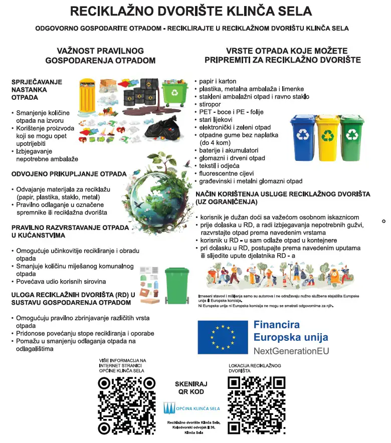 RECIKLAŽNO DVORIŠTE KLINČA SELA, Kolodvorski odvojak II 36, Klinča Sela